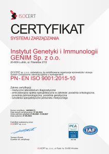 Instytut Genetyki i Immunologii GENIM to innowacyjna i nowoczesna firma założona w 2010 roku. GENIM jest podmiotem wykonującym działalność leczniczą (dawniej Niepublicznym Zakładem Opieki Zdrowotnej – NZOZ). Instytut składa się z diagnostycznego laboratorium genetycznego i immunologicznego oraz ze specjalistycznych poradni lekarskich. W laboratorium wykonujemy badania genetyczne i immunologiczne u chorych na nowotwory.